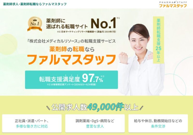 運営元は日本調剤のグループ会社である、株式会社メディカルリソース。求人数も49,000件以上とかなり多いです。